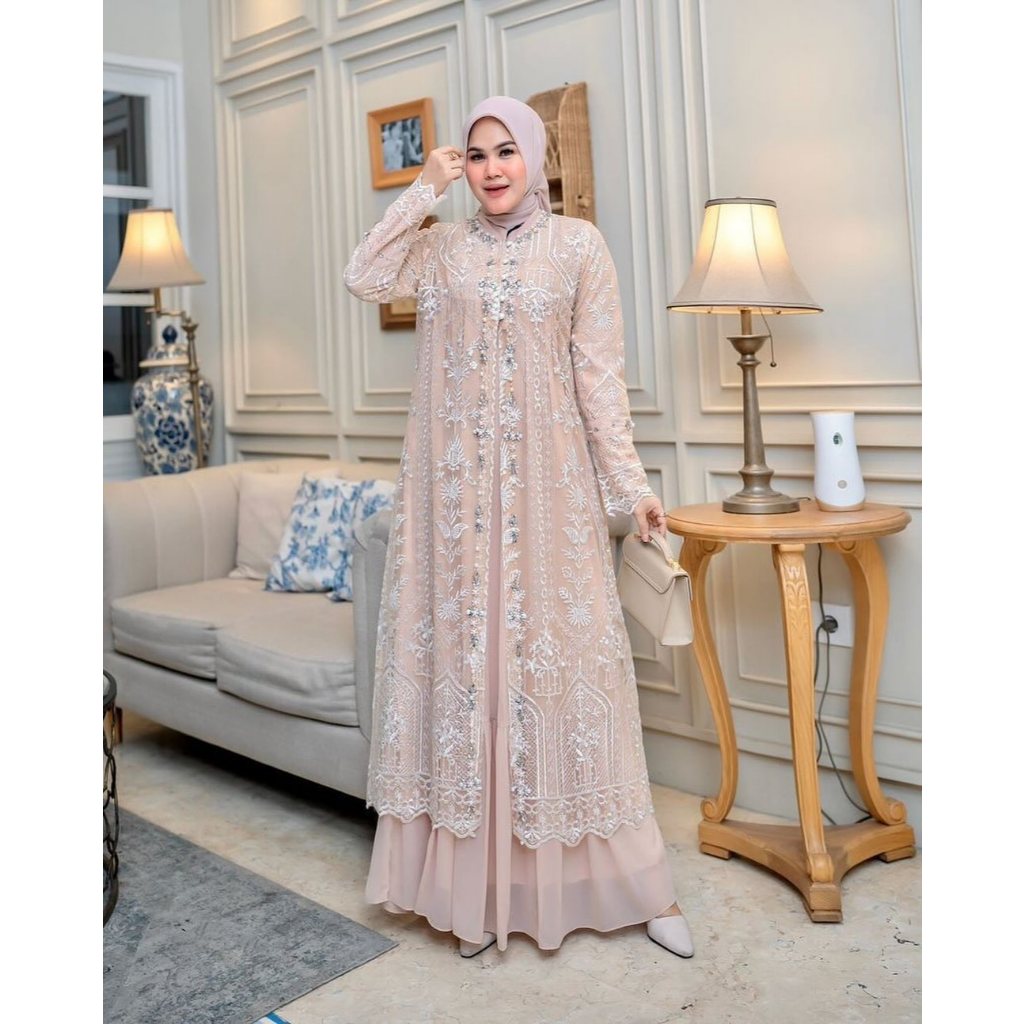 Safira Maxi Gamis Wanita Brukat Mewah Elegan Terbaru 2025 Dress Kondangan Wanita Kekinian Gamis Pesta Remaja Viral Model