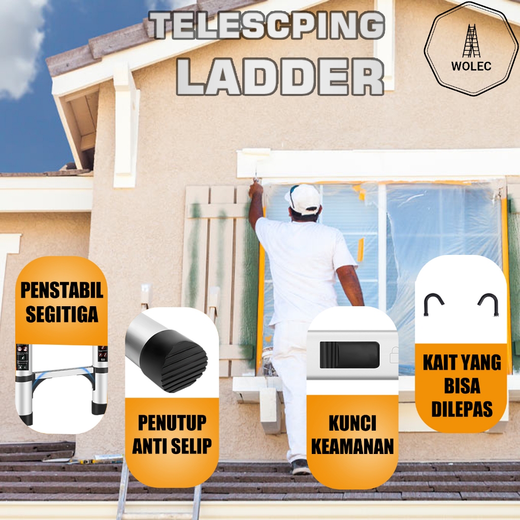 WOLEC Tangga Teleskopik Aluminium 16 Steps Tangga Teleskopik Single Telescopic Ladder 7M