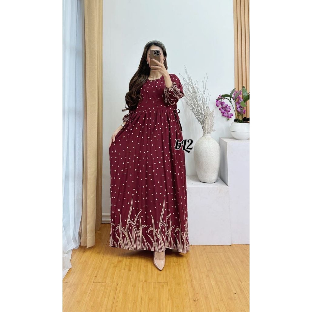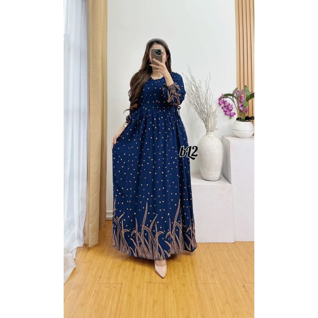 Dress Gamis Panjang Busui Resleting Depan Bahan Tebal Nayan Untuk di Dalam Atau Di Luar Rumah