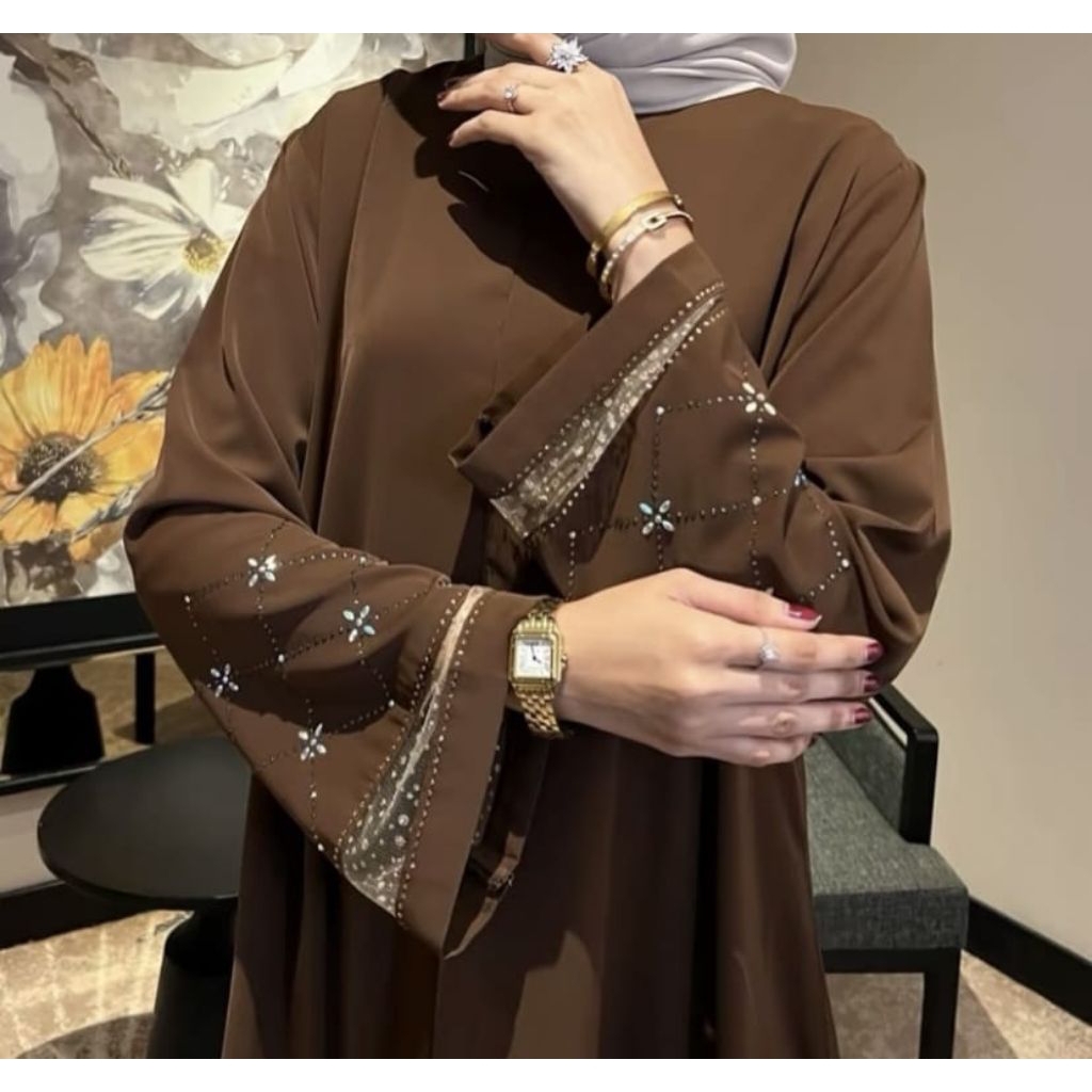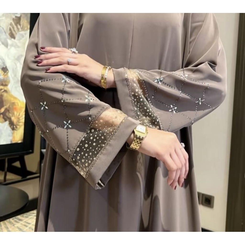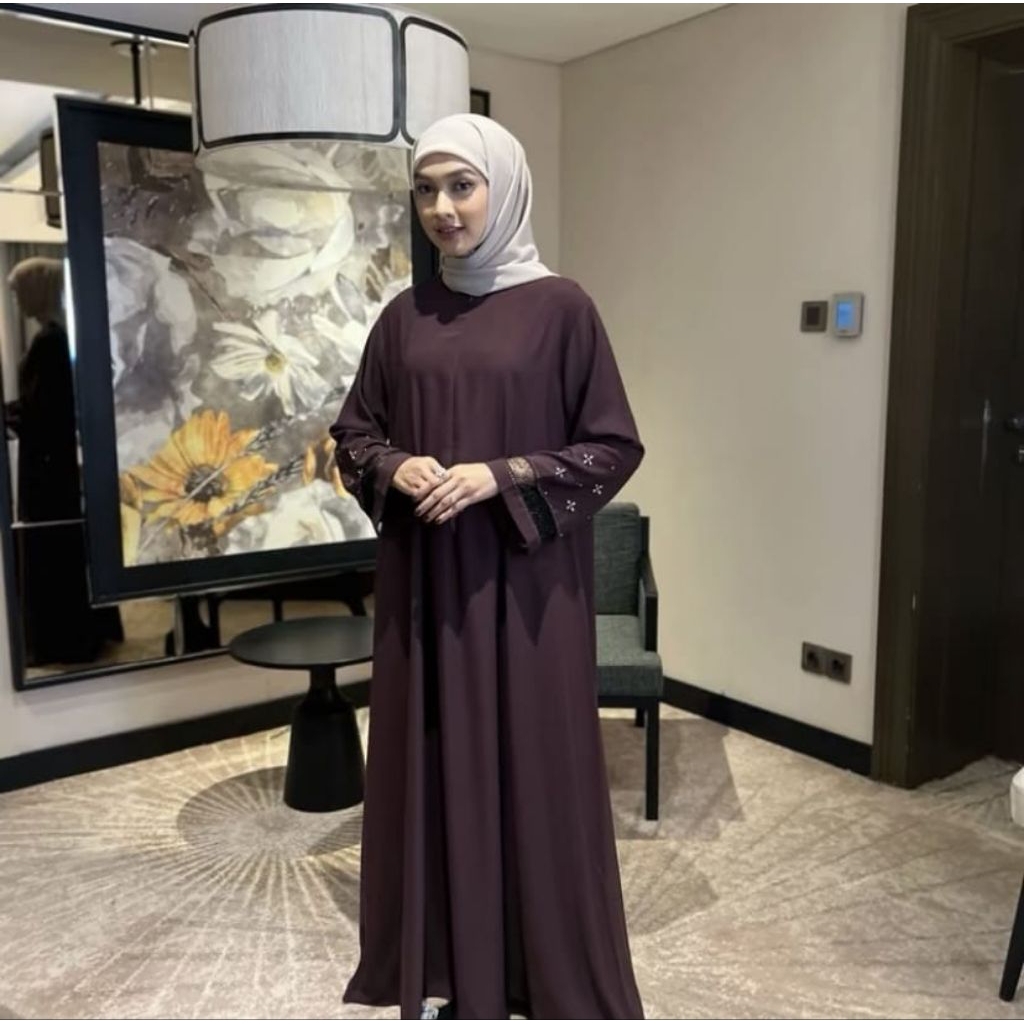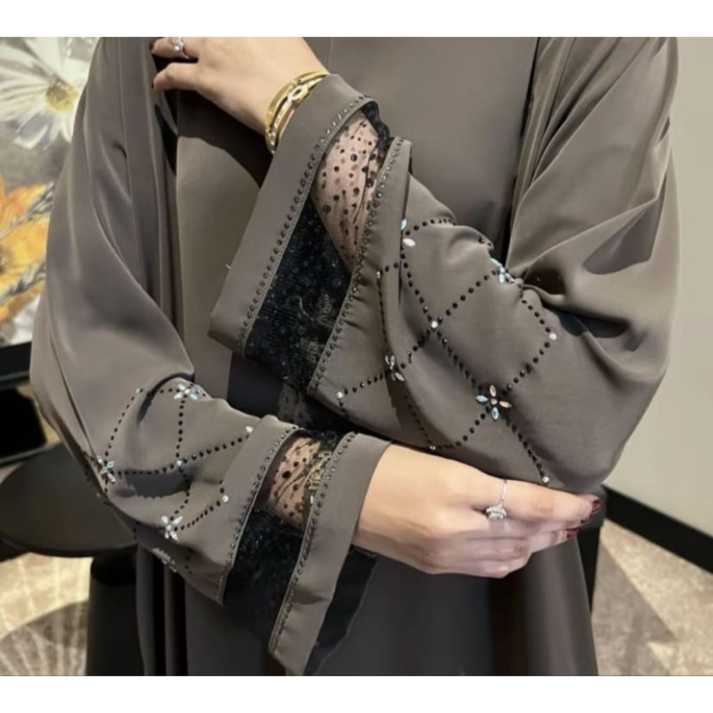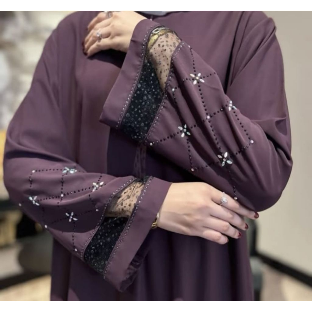 ABAYA PAYET PREMIUM // GAMIS MUSLIM ANTI UV // ABAYA BERTABUR KRISTAL SWAROS DAN PERMATA CANTIK LEMBUT ADEM MEWAH