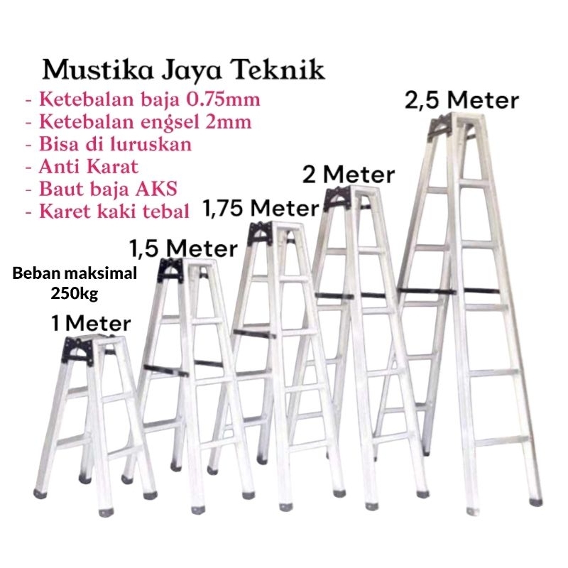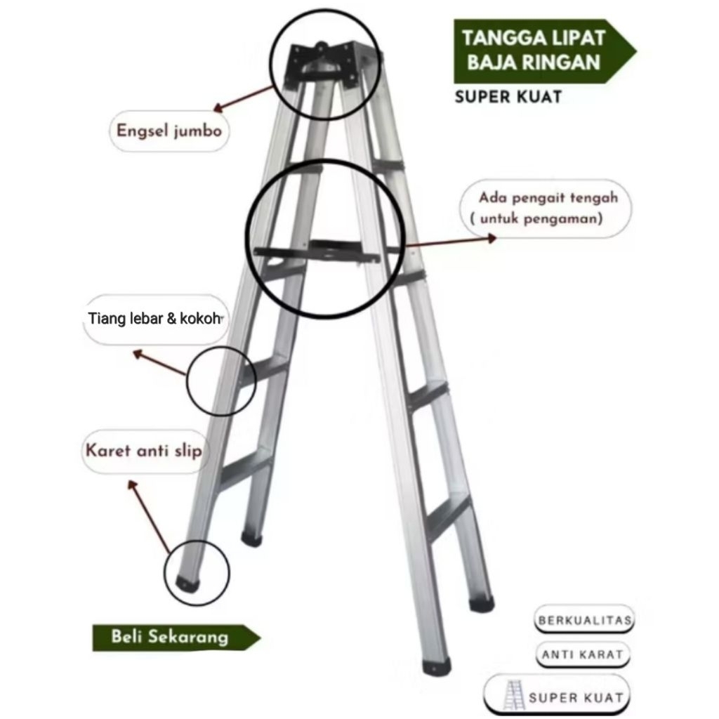 Tangga Lipat Engsel Tebal Super Kuat Ukuran 1 M / 1,5 M / 1,75 M / 2M / 2,5 M Bahan Baja Ringan