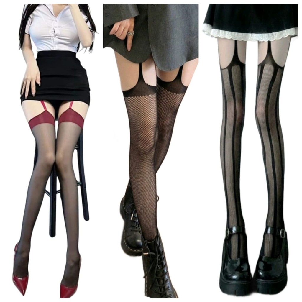 SK23 Pantyhose Stocking Seksi Sepinggang Crotchless Japan Style, Sexy Garter Belt Sheer Tights