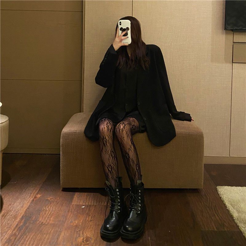 Stoking Motif Bunga Cosplay Lolita Hitam Putih