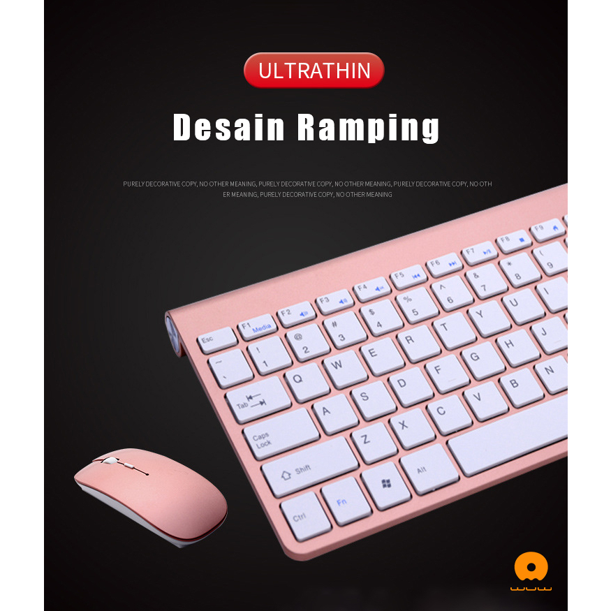 WUW Paket Keyboard Wireless + Mouse Wireless Silent Desain Ultrathin Elegan
