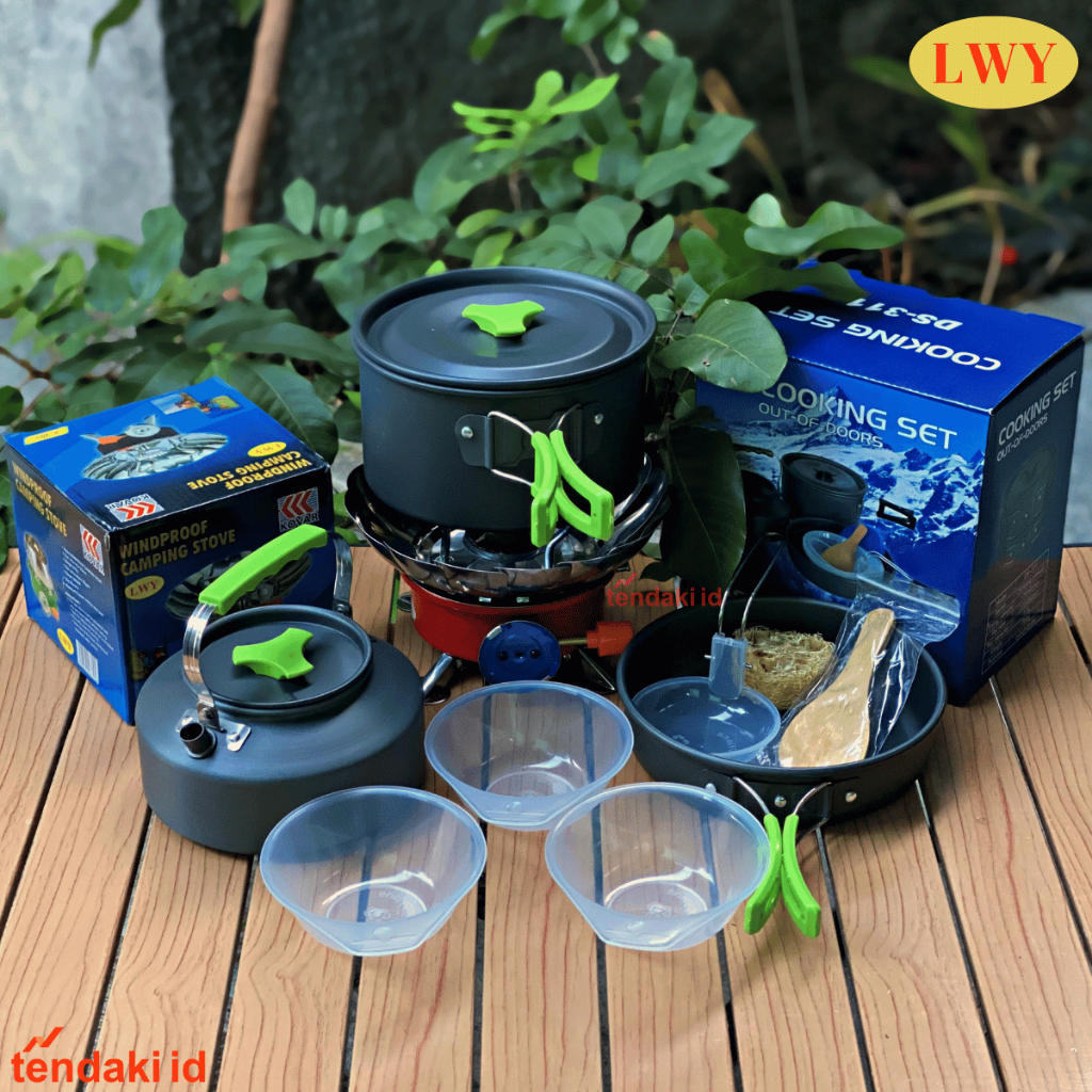 PAKET COOKING SET DS 311 + KOMPOR BUNGA PAKET ALAT MASAK CAMPING | FRYING PAN TENDAKI