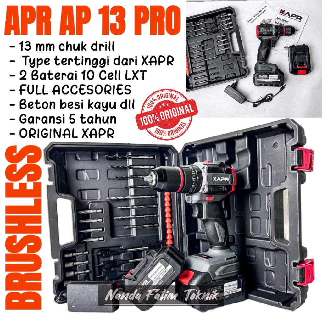 APR JAPAN AP 13 PRO Mesin Bor Baterai Brushless 13mm 2 Baterai 88vf 10 Cell Lxt Bor Besi Kayu Sekrup Drill bor cas bor c