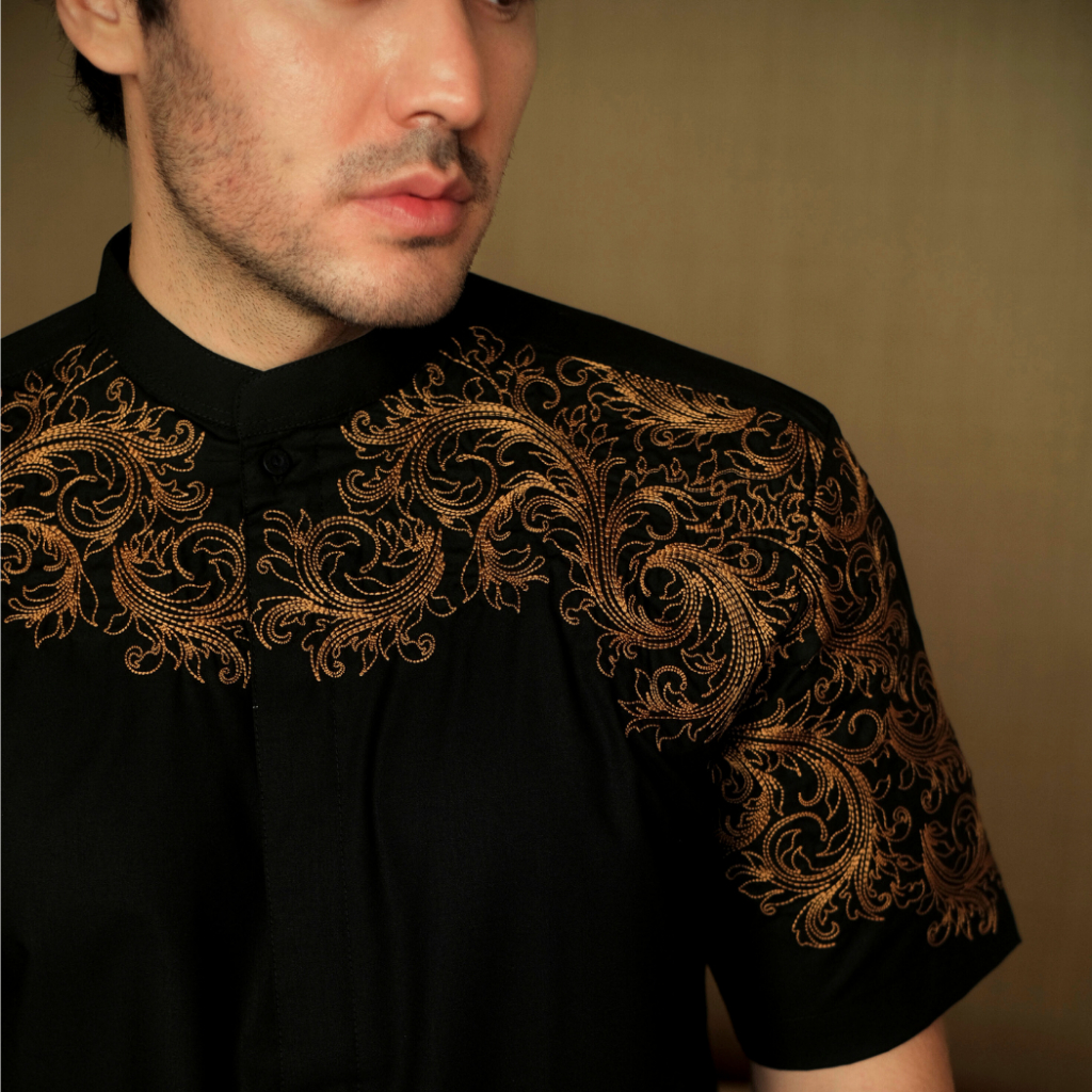 BASTOH Xavier Baju Koko Pria Dewasa Bordir Hitam