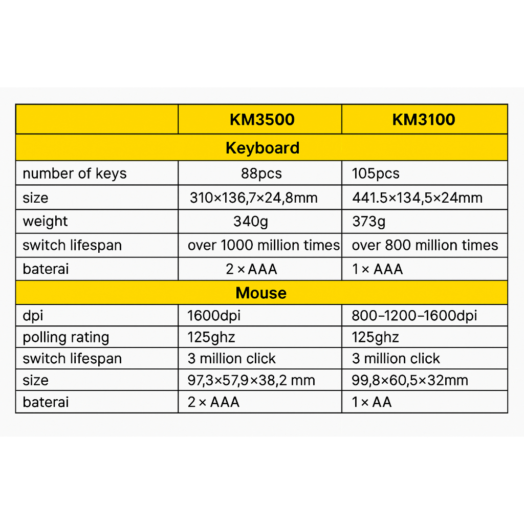 Keyboard and Mouse ROBOT KM3500 Portable Mini Wireless Set Combo / KM3100 Combo Set