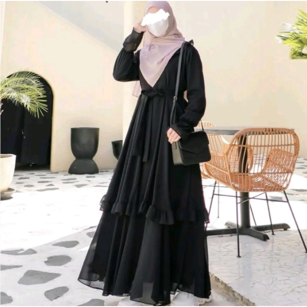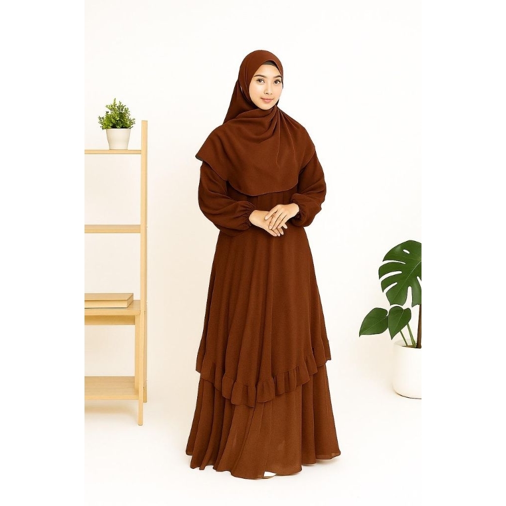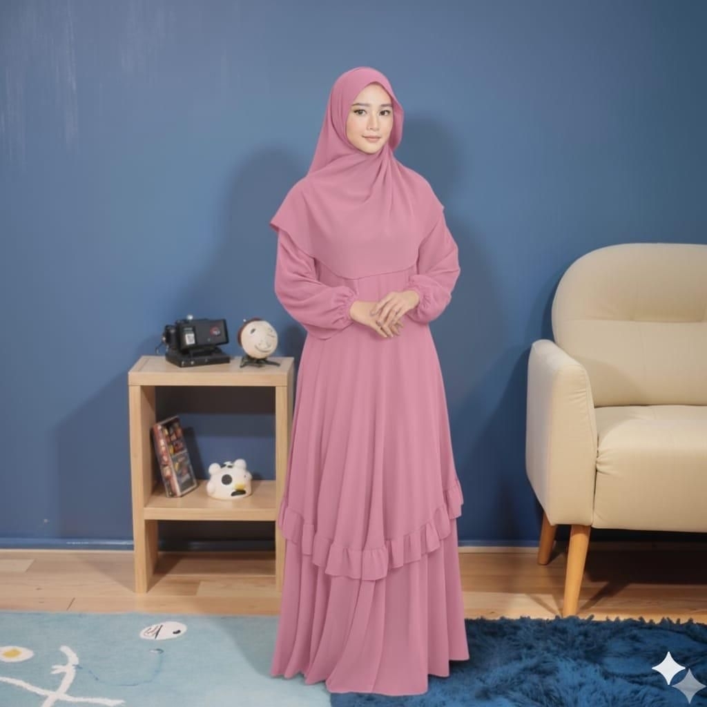Mecca dress Terbaru gamis Malaysia dewasa BUSUI FRIENDLY/Wanita dress/Bahan ceruty babydoll full puring