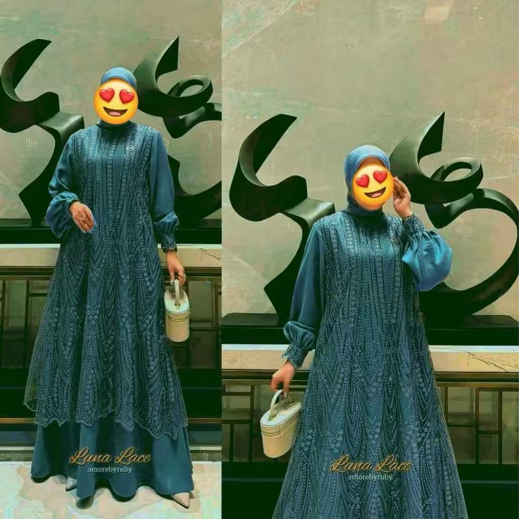 Fukuzy Hijab Luna Lace Dress Amorebyruby Ceruty Babydoll Mix Full Brokat Kondangan Ceruty Gamis Jumbo Gamis Kekinian Gam