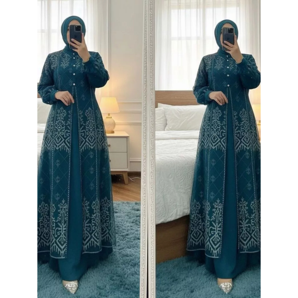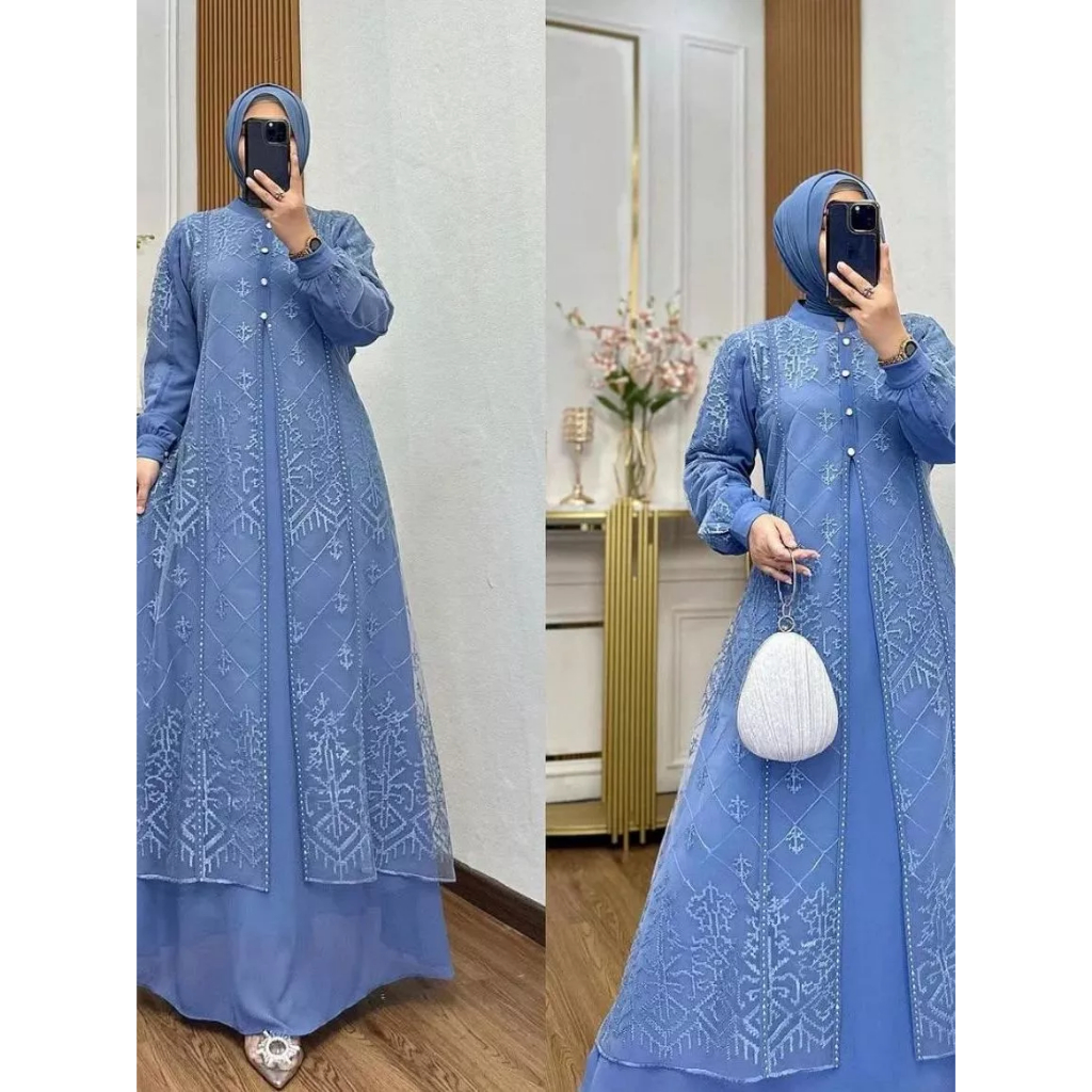 Gamis Muslimah Elegant & Flowy Aksen Bordir Mutiara Eksklusif Premium Quality.