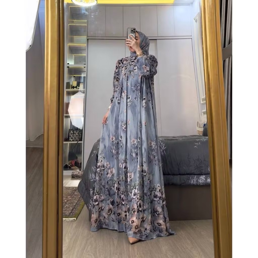 Gamis Rayon Set Hijab - Gamis Motif Terbaru - Gamis Dress Kekinian - Gamis Set Hijab Rayon Premium