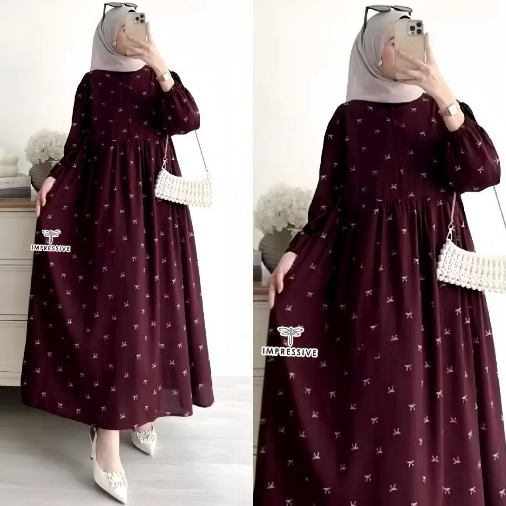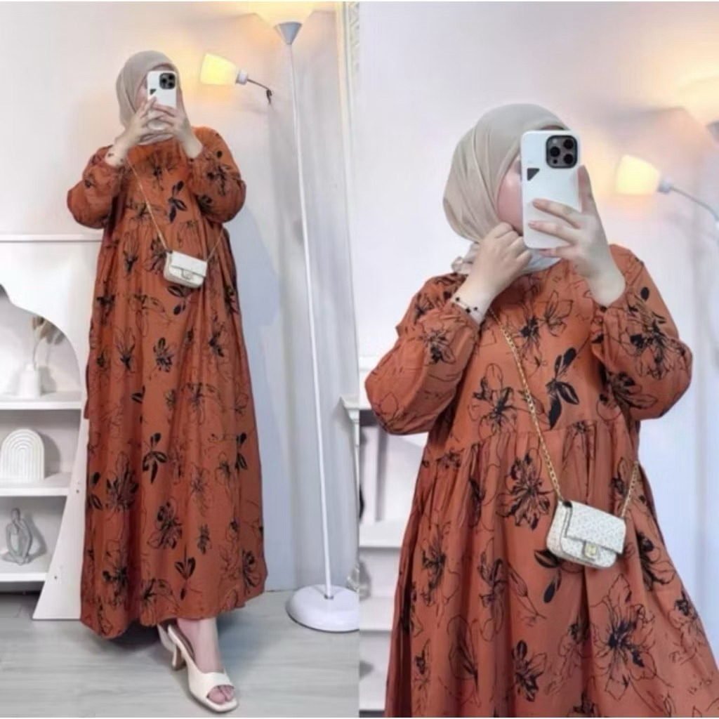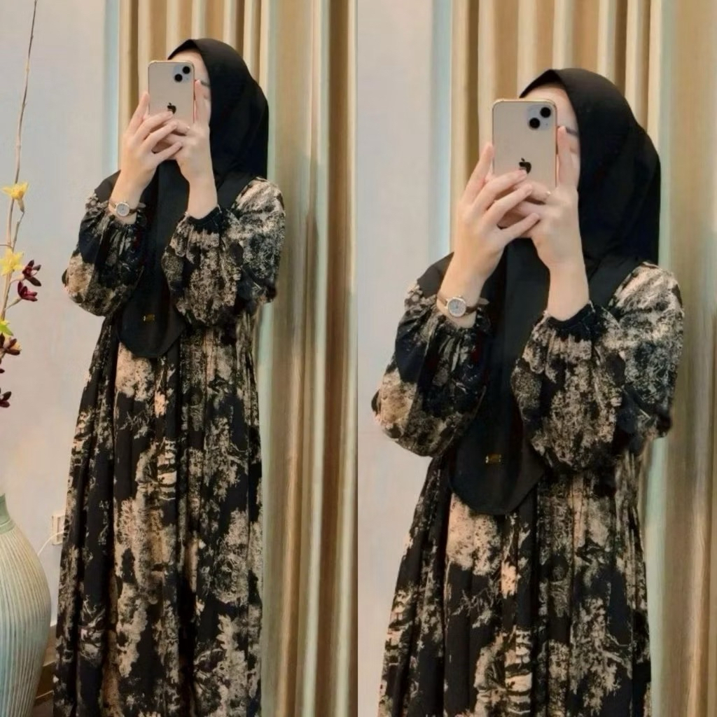 Gamis Midi Dress Rayon Premium Resleting Busui Lengan Karet Wanita Muslimah