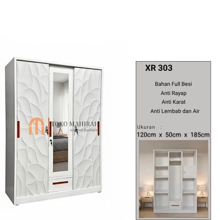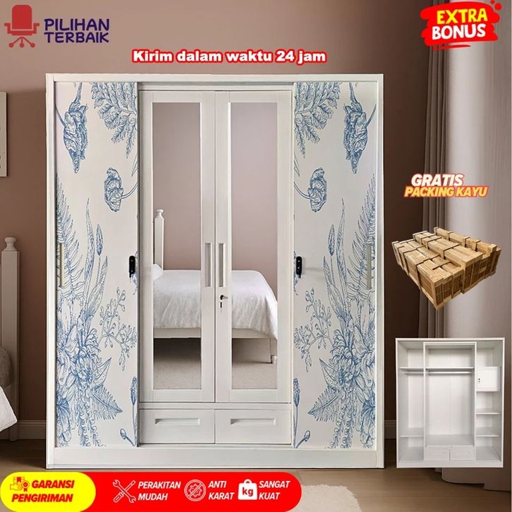 Lemari Pakaian Besi Full Anti Banjir Cermin Lemari 2 pintu,3pintu,4pintusliding Besi