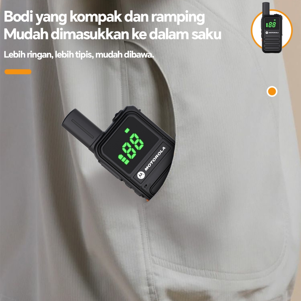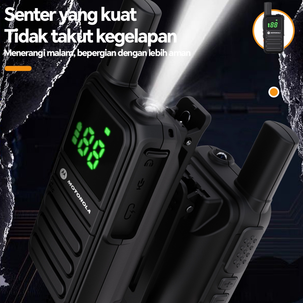 MOTOROLA Walkie Talkie Mini HT Radio T82 9800mAh Bat Type-C charging 10W Jarak jauh 15KM Headset-K