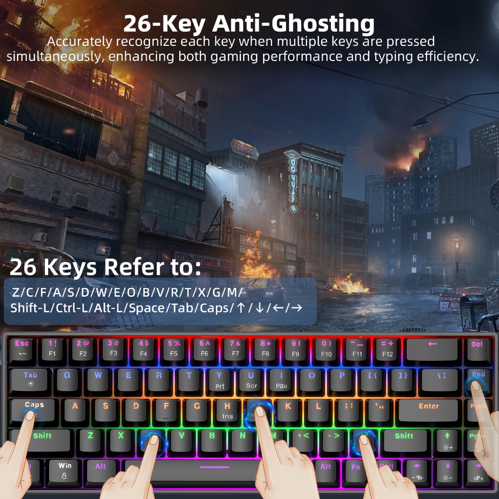 Goojodoq 68Keys Wired Mechanical Keyboard Gaming Keyboard PBT Keycaps Hot Swappable RGB Light for PC Laptop