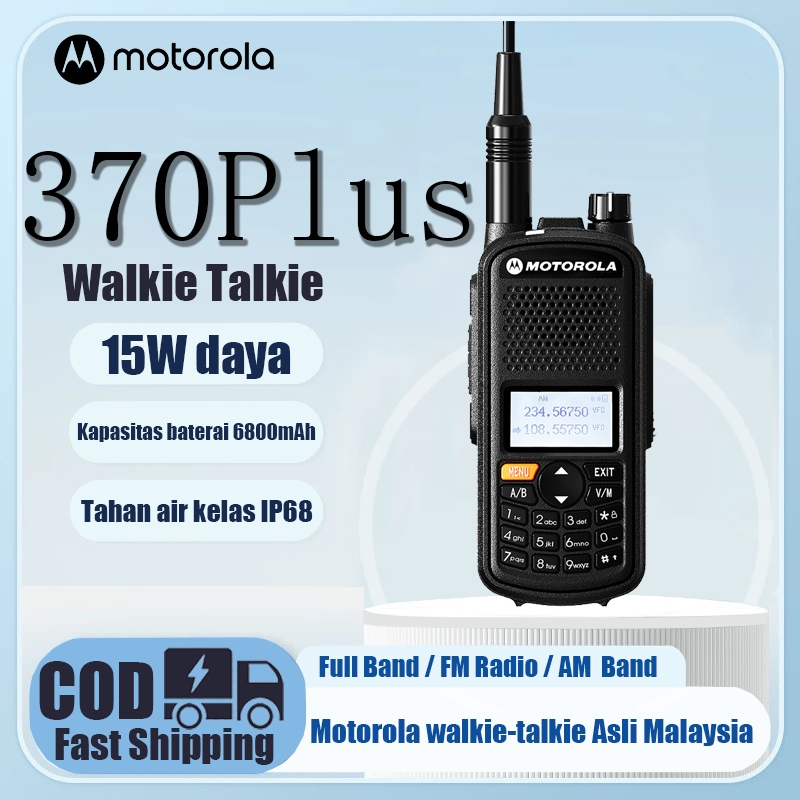 HT Motorola 370plus 15 Watt Walkie Talkie Radio Jarak Jauh 15KM satu tombol untuk frekuensi Walky Talky U/V segmen ganda FM IP68