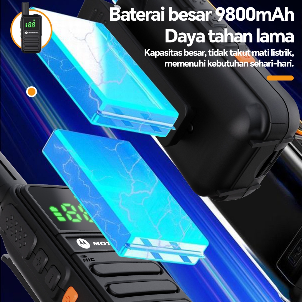 PromoMotorola T82 Walkie Talkie 15KM JARAK JAUH - 10W DAYA TINGGI - 16 Saluran - PORTABLE - Paket 2 Unit - Baterai 9800mAh Tahan Lama 120 Jam - IP54 Tahan Air & Jatuh - Type C