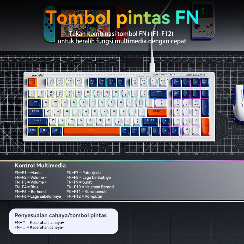 OLYPS Keyboard Gaming RGB Backlight Mechanical Feeling Kabel USB 98 Keys Ergonomic Untuk PC/Laptop