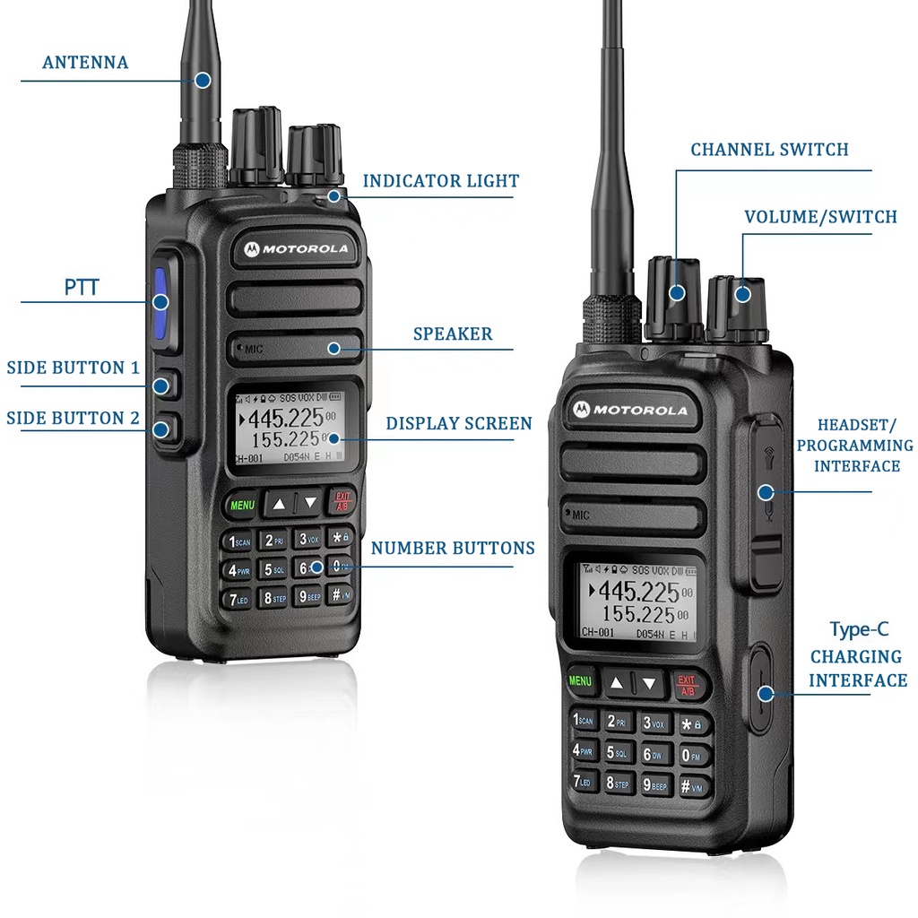HT Motorola 370S radio Handy Talky Walkie Talkie anak handphone perangkat outdoor 20KM Type-C Charging 15 Watt VHF dan UHF 6800mAh Civil Digital Two Way Radio IP54 Tahan air dan Tahan debu