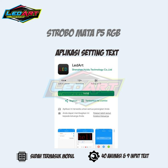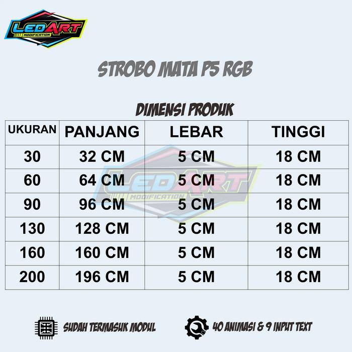 Strobo Mata P5 Rgb 12 Dan 24 Volt Bisa Rubah Animasi Dan Tulisan Lewat Hp Car Lampu Truk - 30Cm