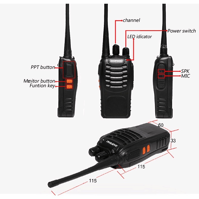 100 ORI HT Baofeng 888s Walkie Talkie Jarak Jauh 10km(Max) 1500mAH HT Wlan UHF 2 Units Handy Talky Waterproof Portable With Charger / Headset