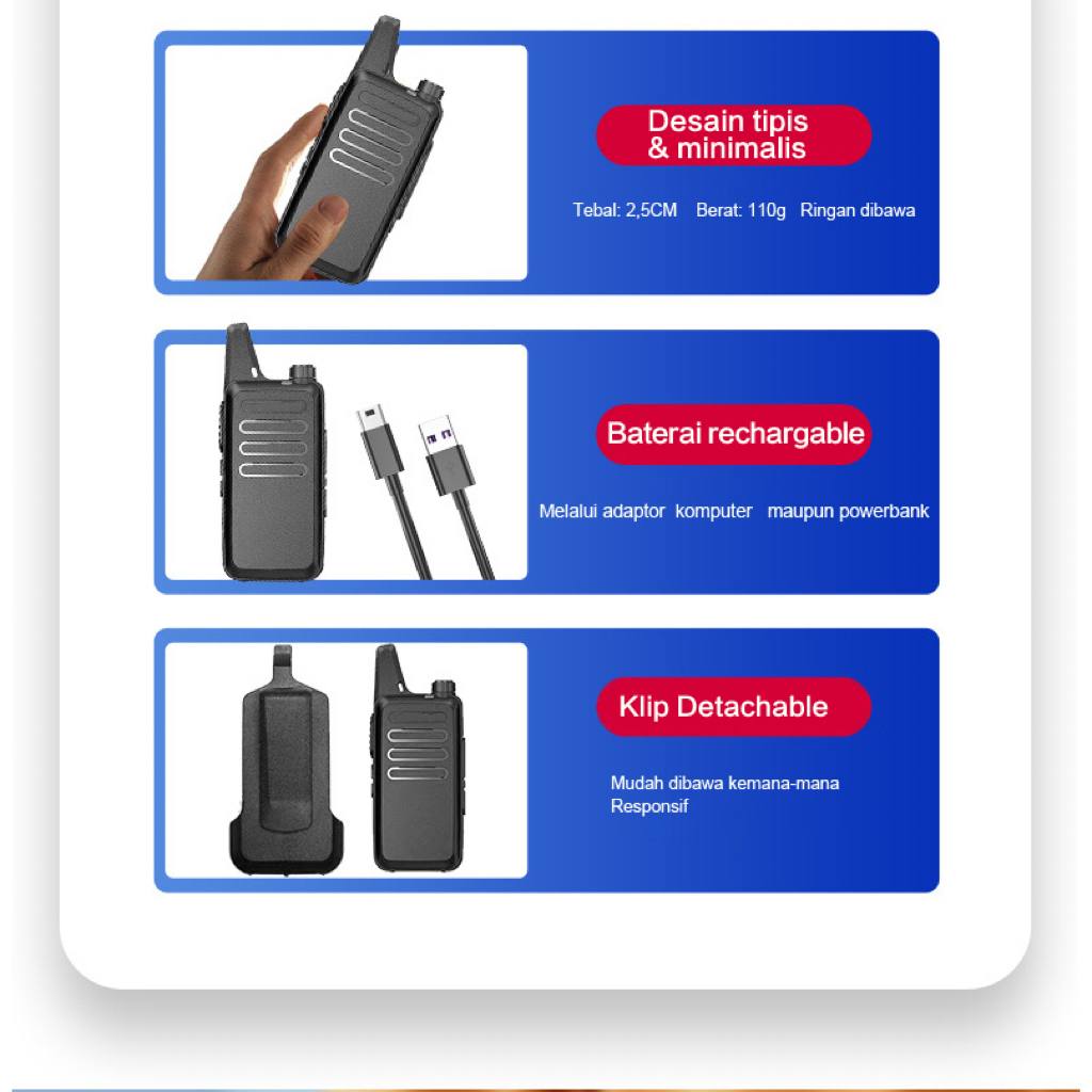 HT T20 C1 Walkie Talkie Portable 2Pcs Handy Talky UHF Wlan Two Way Walky Talky dengan Charger