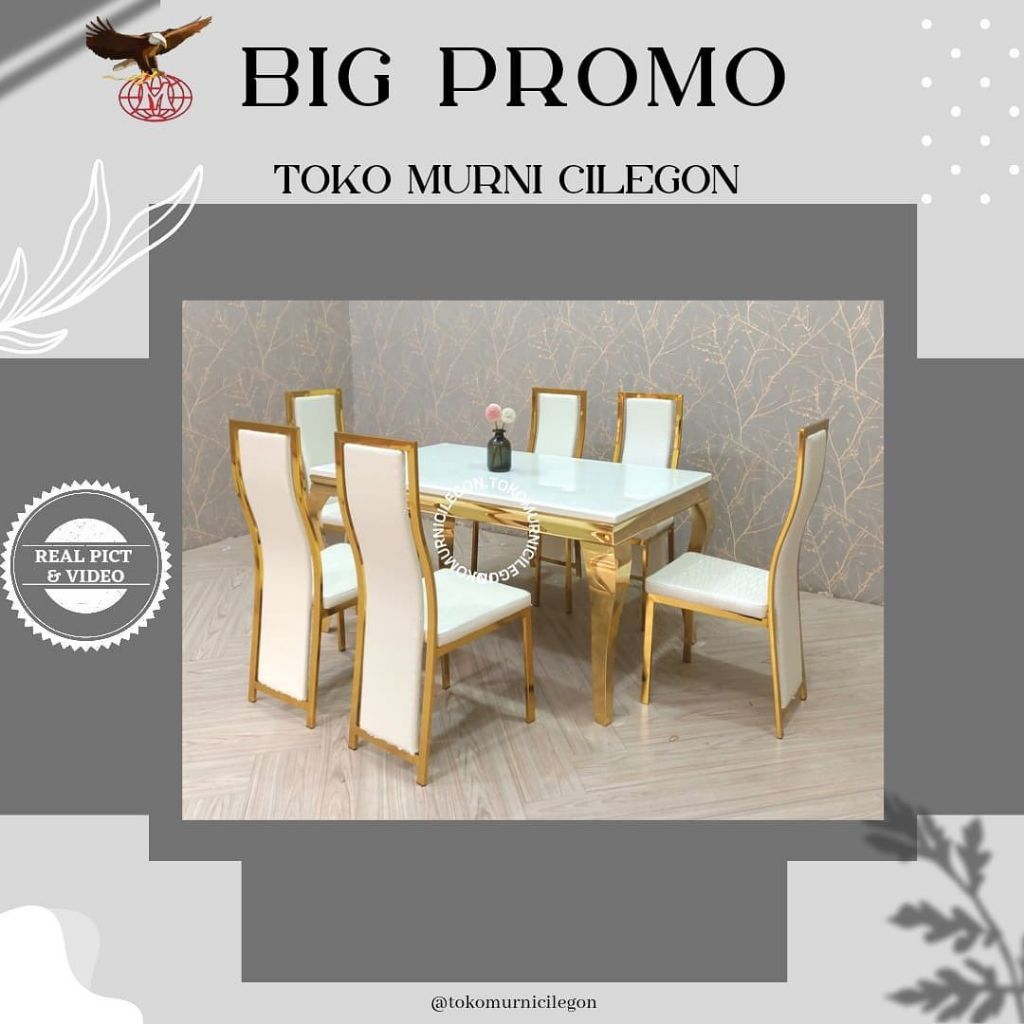 Meja Makan Fuji Marmer 6 Kursi (free ongkir cilegon serang kota)