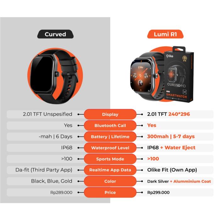 OLIKE LUMI R1 SMARTWATCH 2.01" CURVED HD DISPLAY IP68 JAM TANGAN BLUETOOTH CALL ORIGINAL - s1lverr