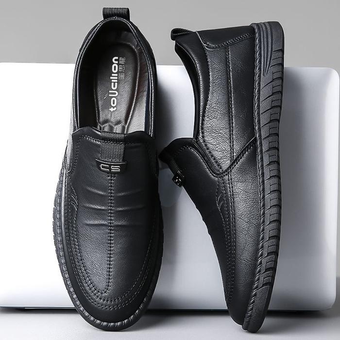 TECHDOO SEPATU KERJA HITAM PRIA SEPATU SELOP PRIA FORMAL SEPATU SLIP ON KERJA KANTOR FASHION KEREN KEKINIAN MC483 - HITAM, 39