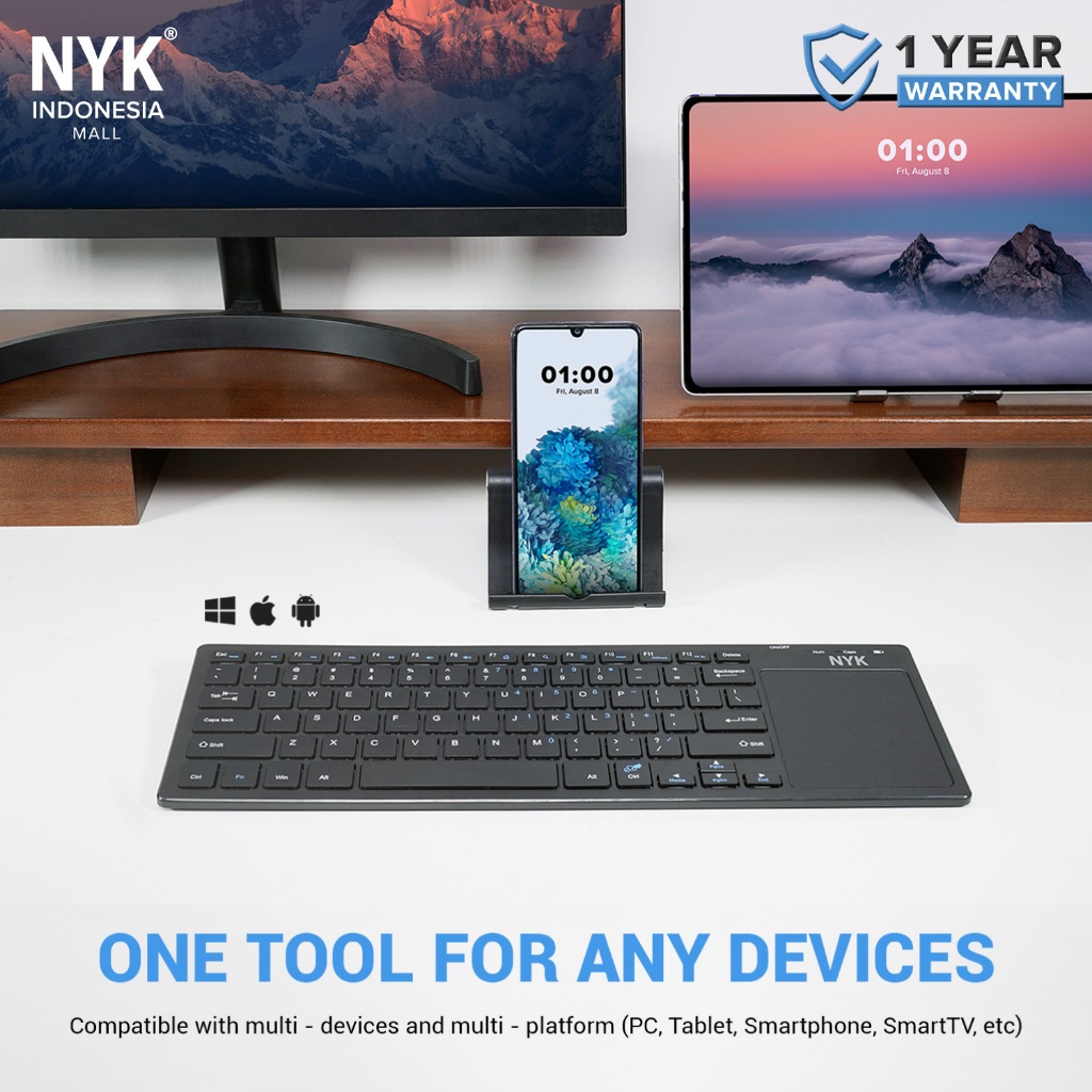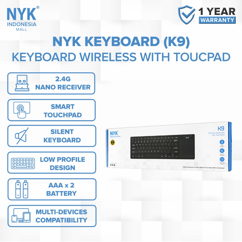 Keyboard Wireless NYK K9 + Touchpad Smart, Silent, Multi Device 2.4G