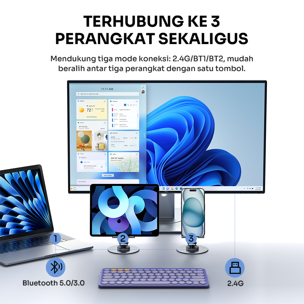 ROBOT Keyboard Wireless 3 Koneksi Bluetooth USB Silent Keys Multi-Device Untuk Ipad Tablet Keyboard Anti Bising KB40 Original - Garansi 1 Tahun