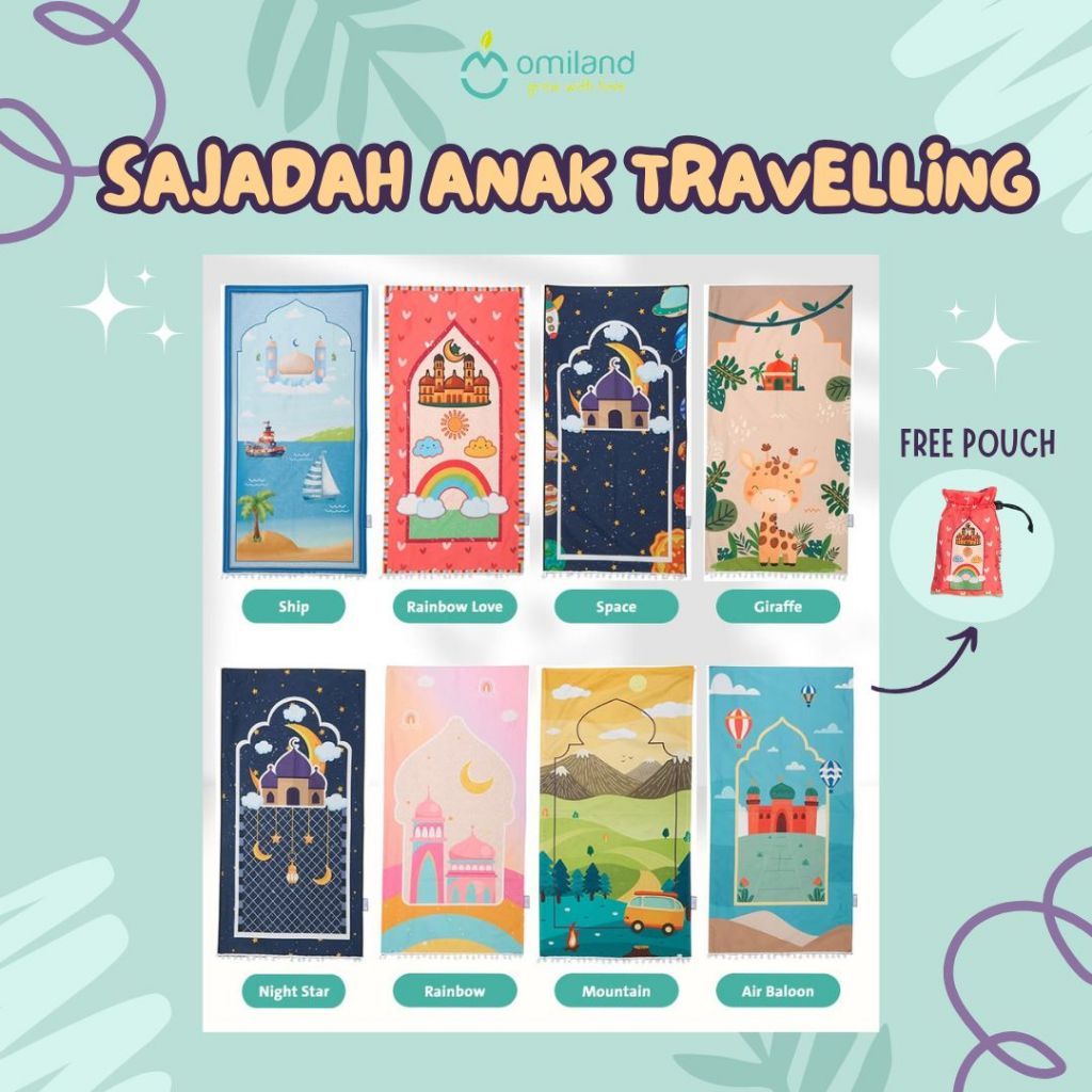[PROMO] Omiland Sajadah Anak Premium 2in1 Empuk Alas Shalat Travelling Free Pouch Original
