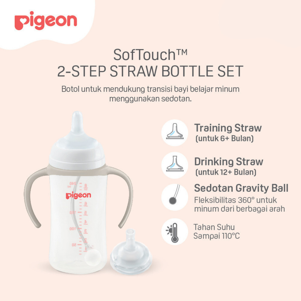 [PROMO] PIGEON Botol BPP Wide Neck WSoftouch Straw All In One Set Bottle set 240 ml