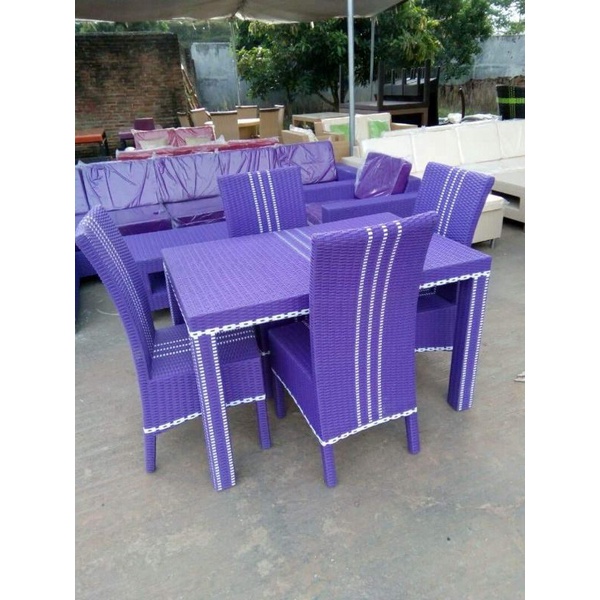 Meja Makan Rotan Sintetis 4 Kursi Kayu Mahoni