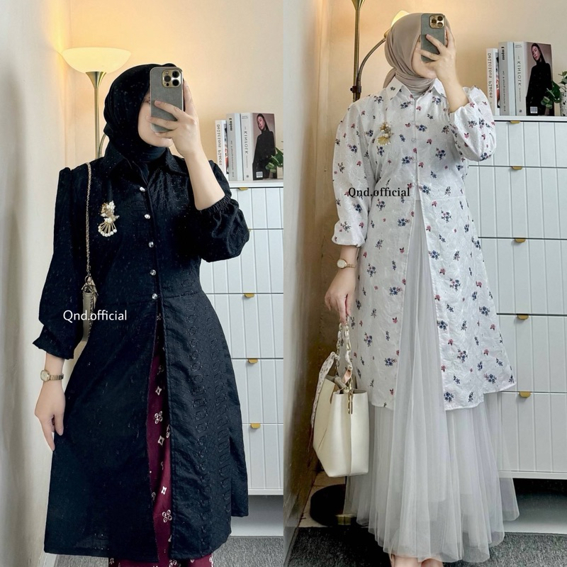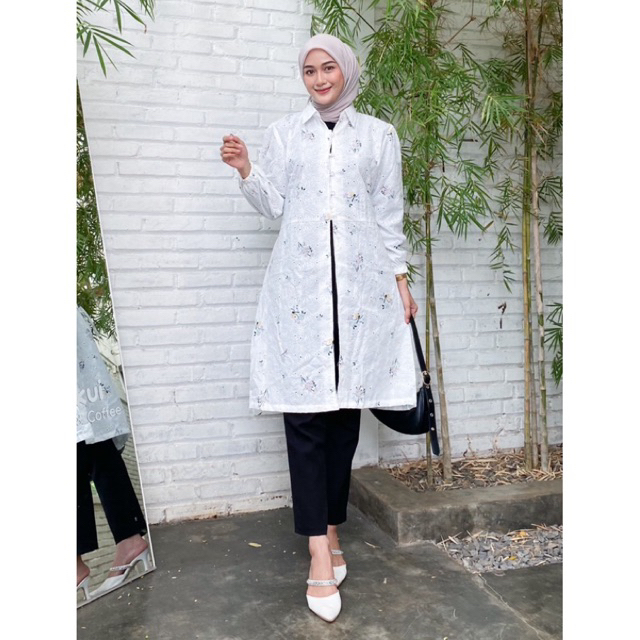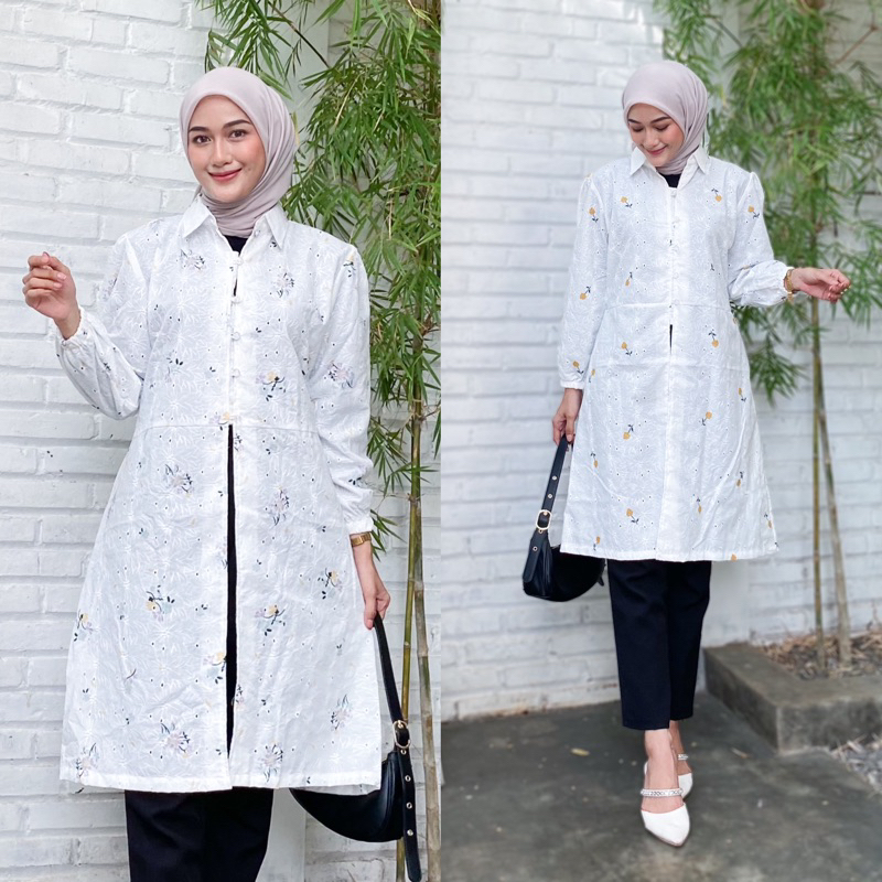 Elea Tunik Katun Bordir Bunga Putih Premium longtunik kondangan