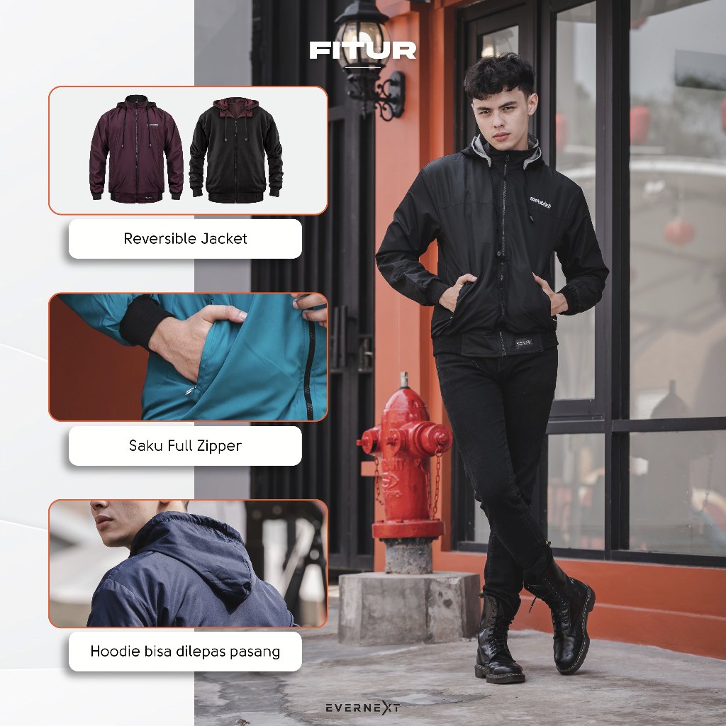 Evernext Apparel - Jaket Pria Bolak Balik Jaket Motor Parasut 2IN1 Royce Jacket Water Resist Pria