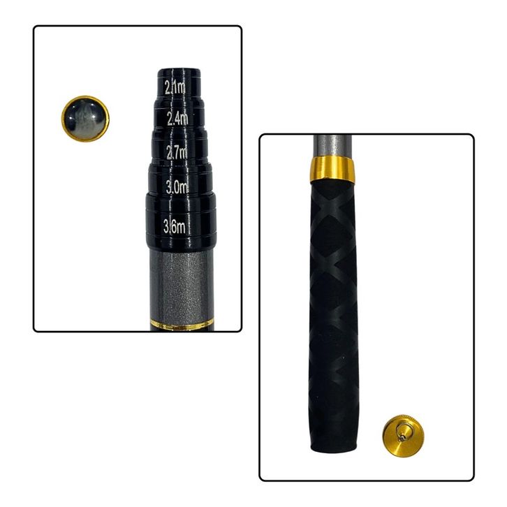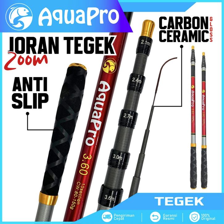 Joran Tegek Zoom Telescopic Uk.180-360 Joran Pancing Antena 8-10 Section Bahan Carbon Gloss Ceramic Coating