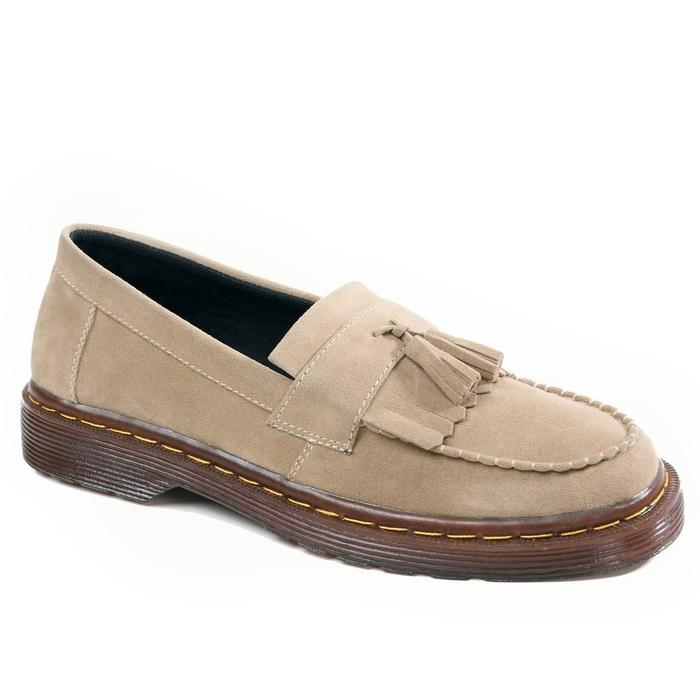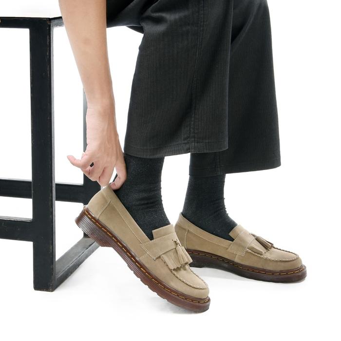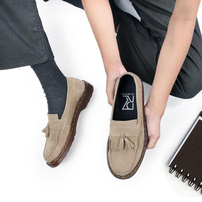 RIONZ ALONSO CREAM - SEPATU KASUAL LOAFERS PRIA KANTOR KULIAH WISUDA SUEDE FLAT SHOES KERJA PANTOFEL HITAM LOAFER SUEDE - ALONSO CREAM, 39