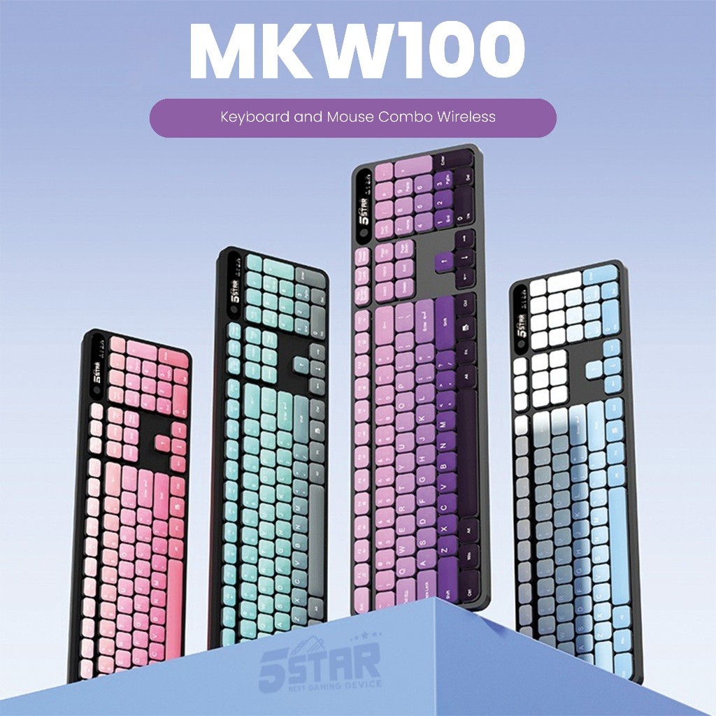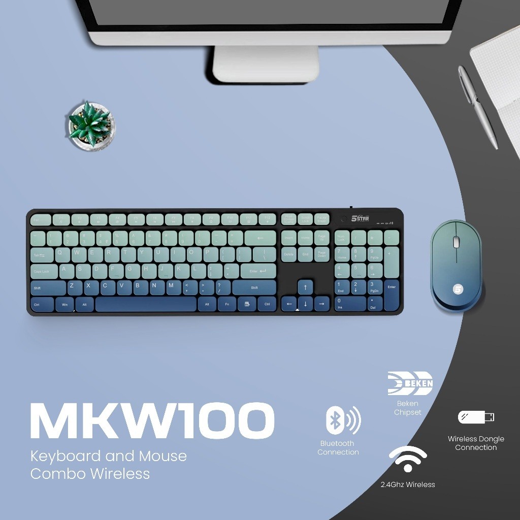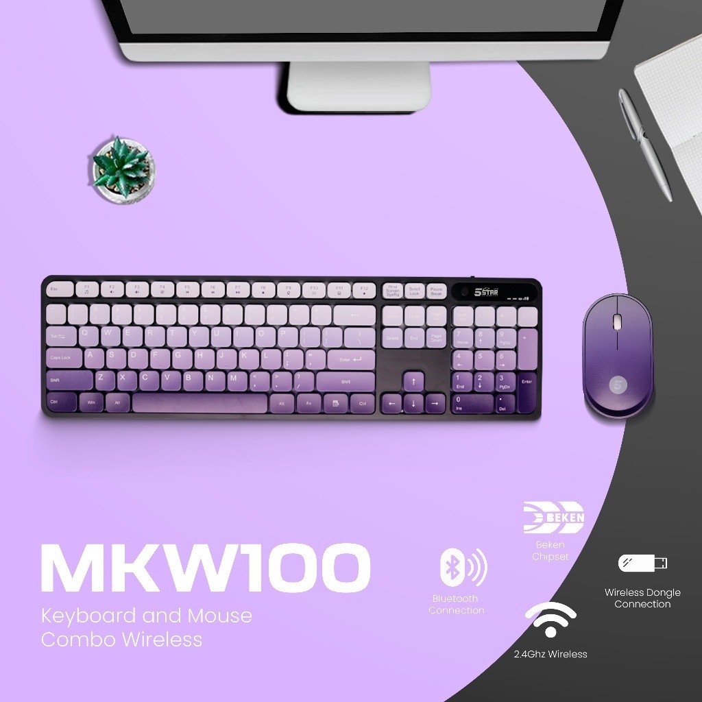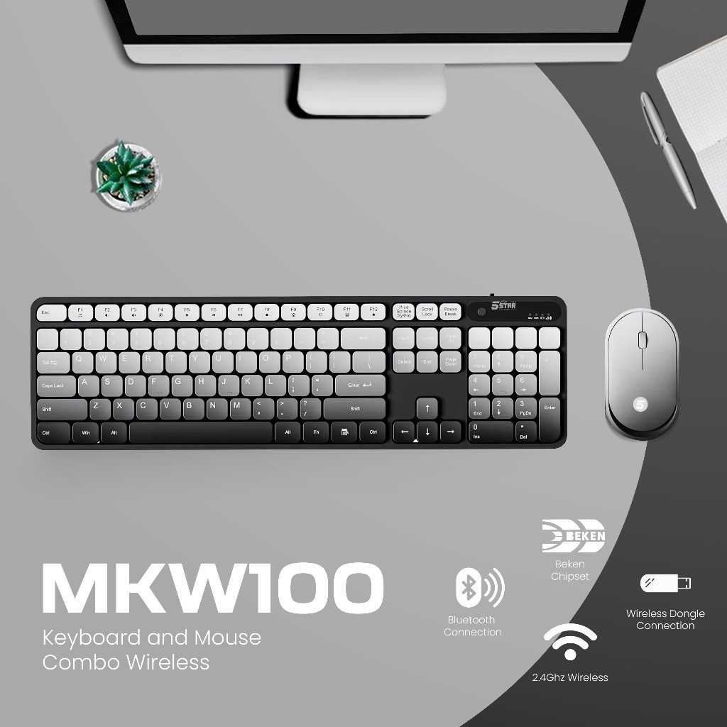 5Star MKW100 V2 Keyboard Combo Mouse Silent Click 2 Mode Bluetooth dan Dongle 2.4Ghz Kompatibel PC, Laptop, Tablet, dan Smartphone
