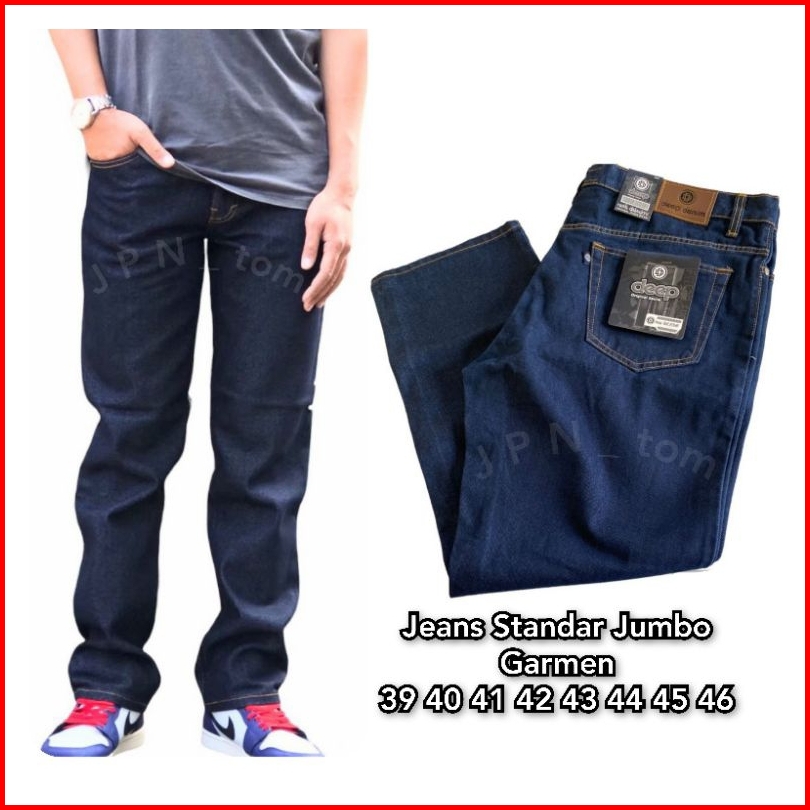 Celana Jeans Pria Standar Jumbo Celana Panjang Besar Denim Navy Wash 37 38 39 40 41 42 43 44 45 46