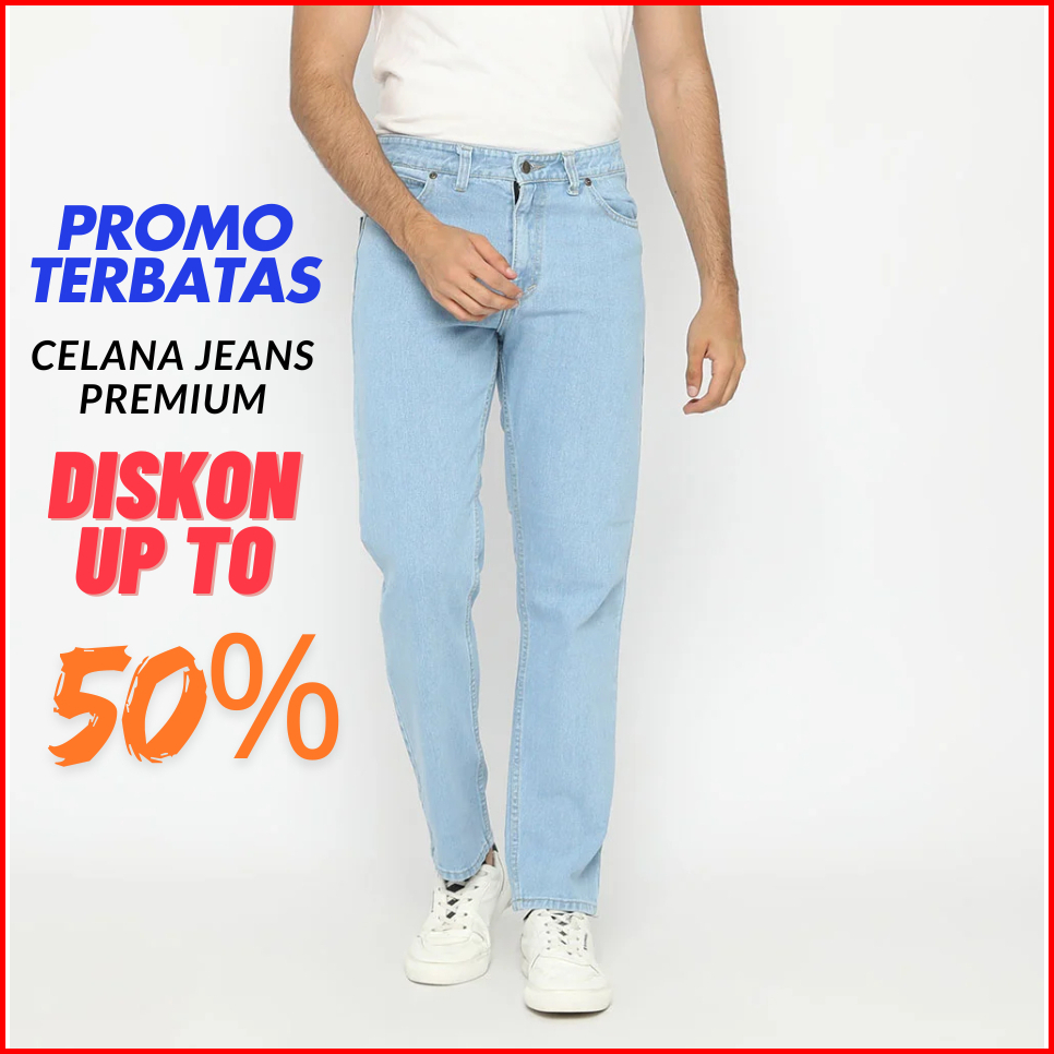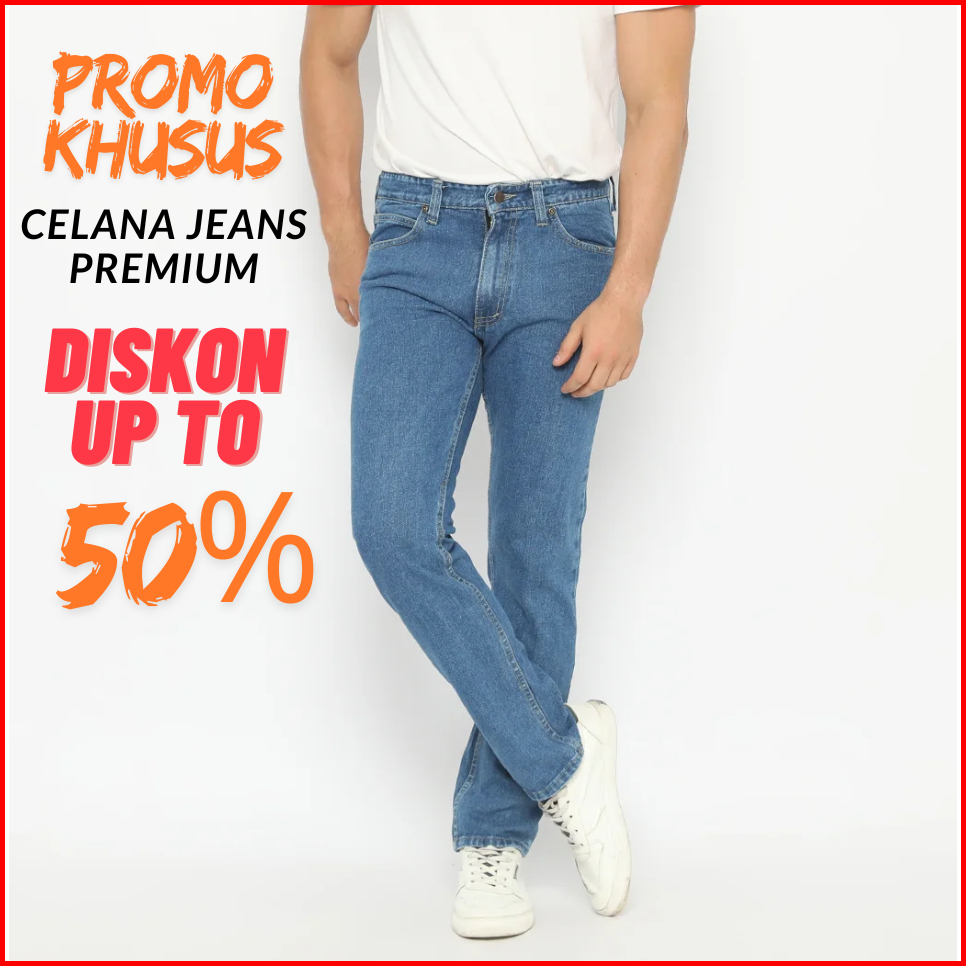Celana Jeans Pria Panjang Reguler Standar Size 27-38 Garmen Hitam Black Birumuda Biru Dongker