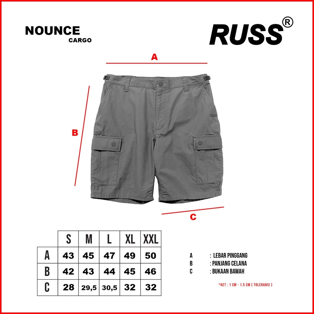 Russ Pants Celana Cargo Pendek Pria Nounce Black Up To Big Size