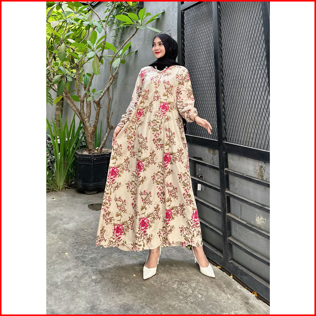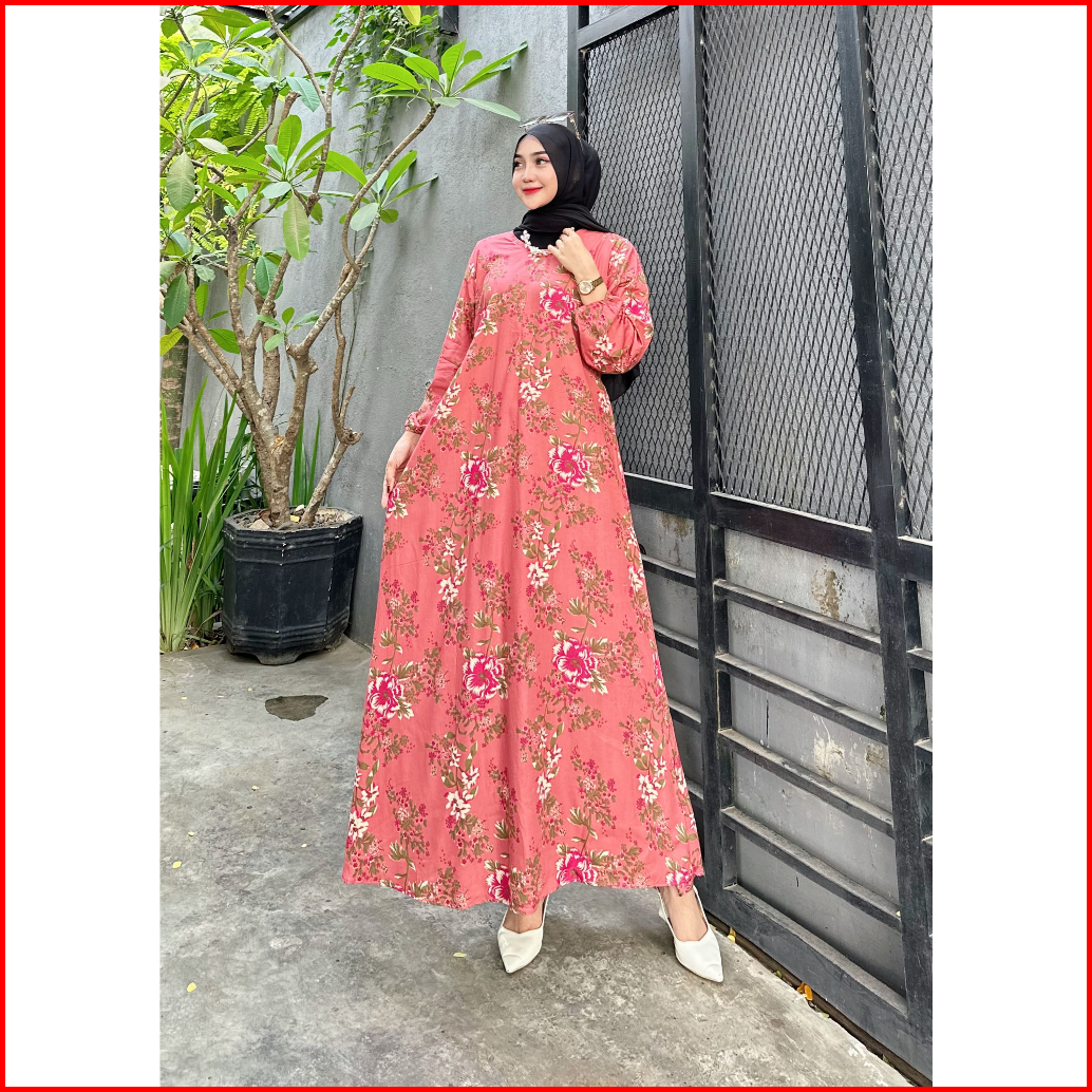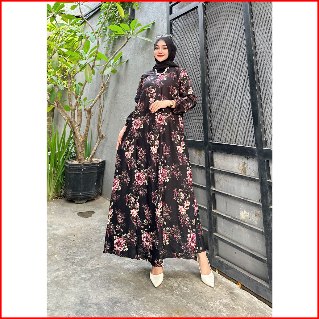 Midi Dress Wanita Rayon Gamis Rayon Adem Busui Friendly