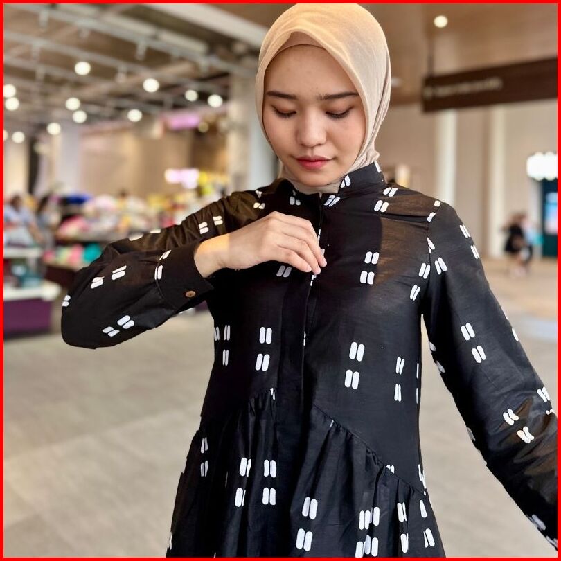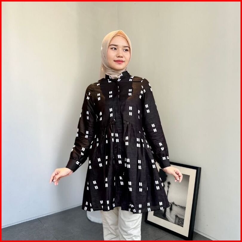 Rasaraya Batik Bendari Tunik Wanita Katun - Atasan Batik Kerja Kantor Hitam Jumputan Busui Friendly