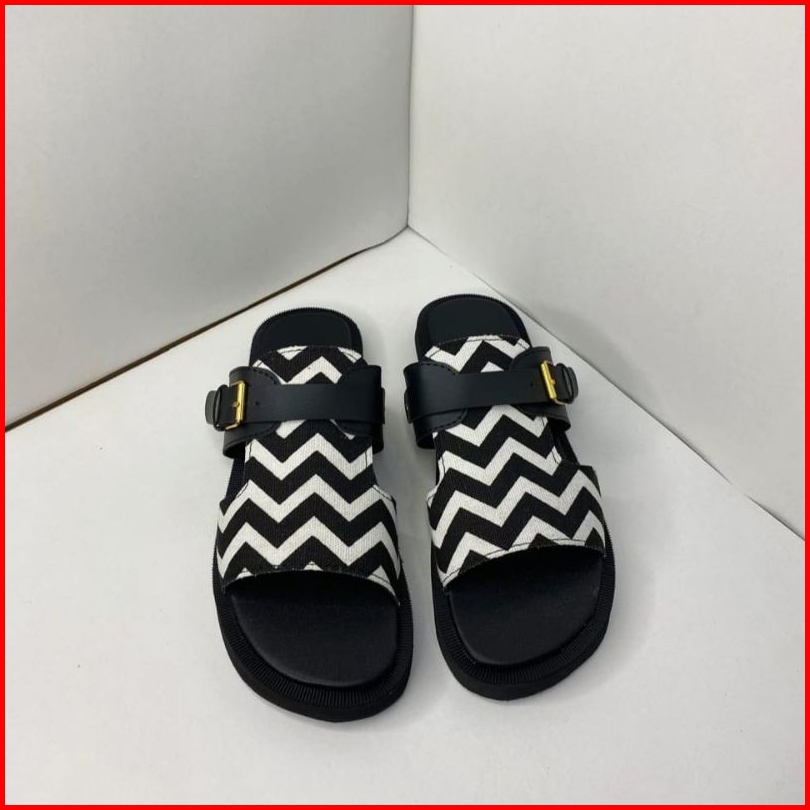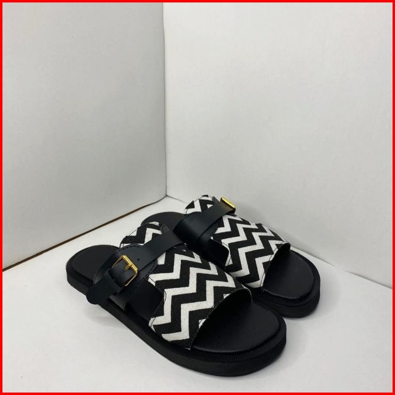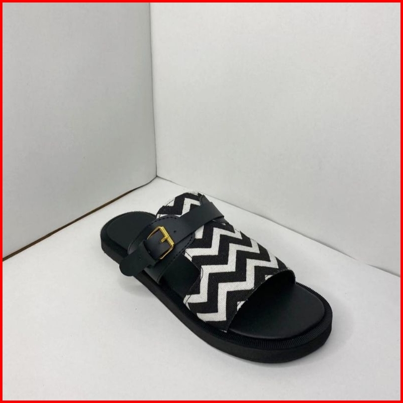 Mahira Sandal Sloup Motif Zigzag Hitam