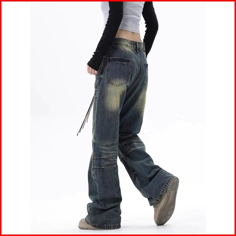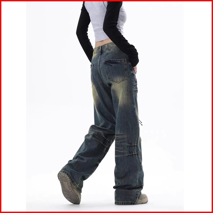 Keygirl Highwaist Oversize Baggy Loose Retro Biru Jeans Celana Jeans Panjang Kulot Celana Kulot Jeans Gombrong