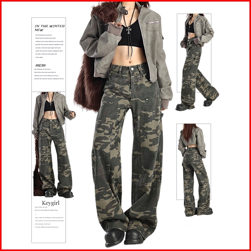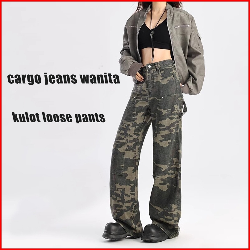 Keygirl Oversize 5xl Celana Cargo Korean Style Cargo Camo Loose Cargo Pants Original Beberapa Saku Cargo Jeans Wanita Hi
