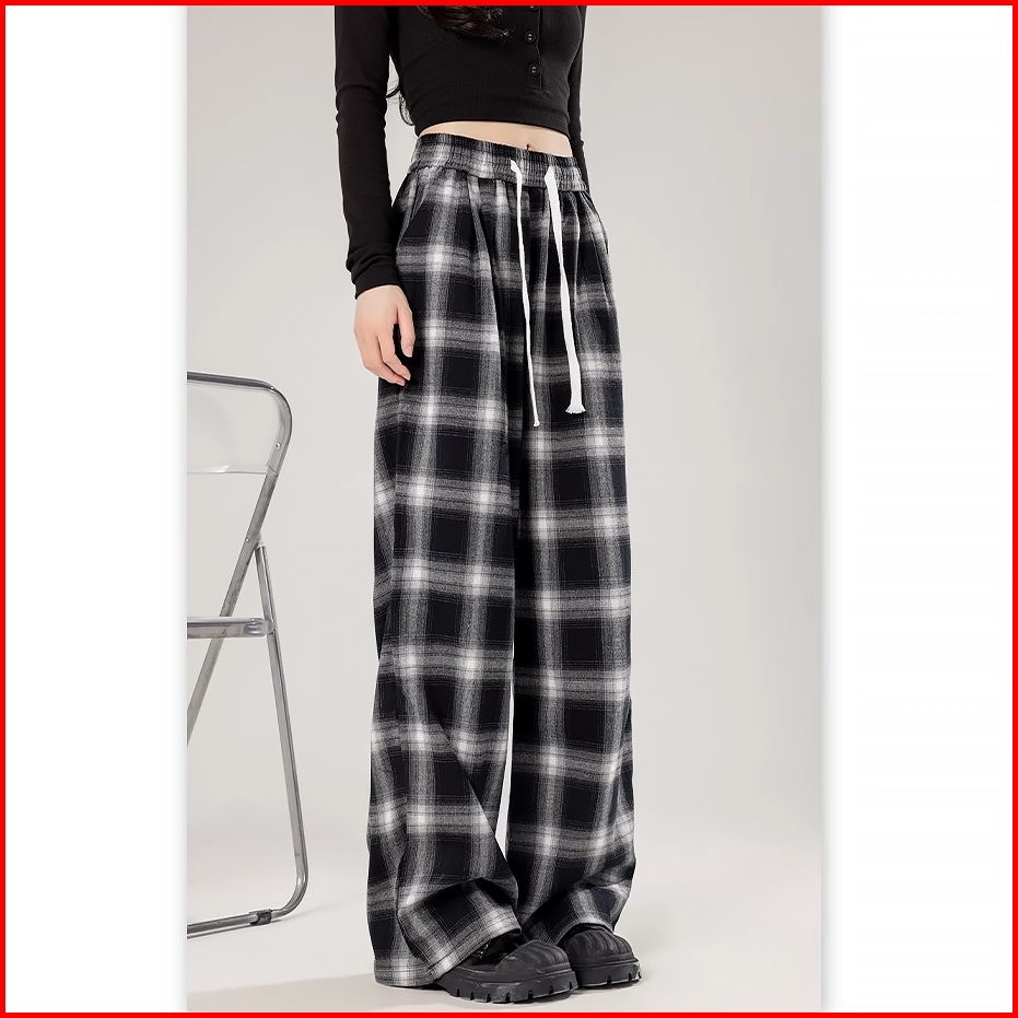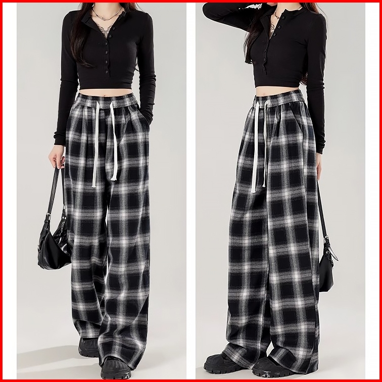 Keygirl Celana Kulot Wanita Kotak-kotak Celana Tartan Cewek Korean Style Long Highwaist Pants Fashion Premium
