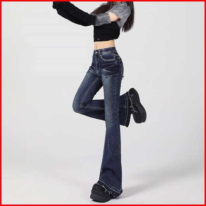Keygirl Celana Jeans Cutbray Wanita Highwaist Kancing Premium Jeans Biru Retro Korea Terbaru